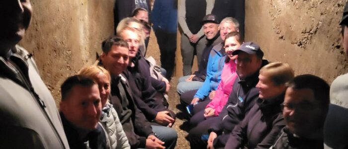 Zbrali smo se v soboto, 10. maja ob 8:00 zjutraj pri športnem parku v Horjulu in se z avtobusom odpravili proti Gorenjski. Naša prva postojanka je bilo staro mestno jedro Kranj, kjer nas je že pričakovala vodička. Skupaj smo se ogledali zelo zanimive in mnogim nepoznane Kranjske rove, ki so v strahu pred letalskim bombnim napadom nad Kranjem nastali v času druge svetovne vojne. Skupna dolžina je kar 1300m, nekateri pa ste jih mogoče že obiskali v sklopu prireditve Vinska pot v Rovih pod starim Kranjem. Ogled je trajal kar nekaj časa, mi pa smo ugotovili, da nismo tako vzdržljivi kot smo mislili, saj nas je na koncu že kar pošteno zeblo. Pred odhodom pa smo v posebni sobi s simulacijo še izkusili kako bi bilo, če bi se bombni napad zares zgodil.