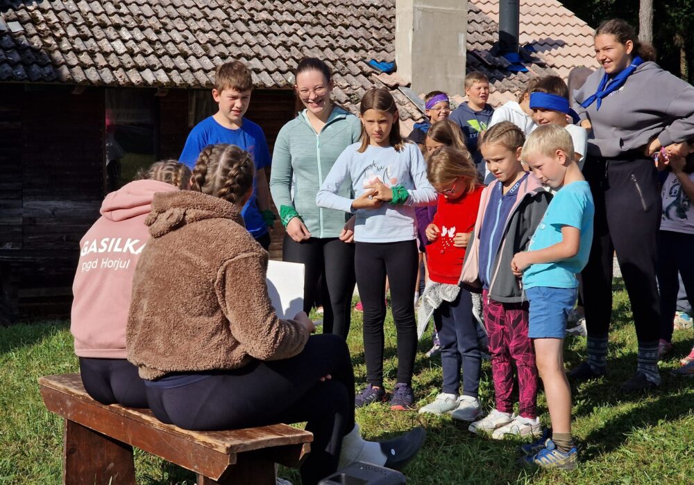 • Jutranja telovadba pod vodstvom predsednika PGD. 23. 8. 2025, Pokojišče nad Borovnico. Foto: Andreja Lončar.