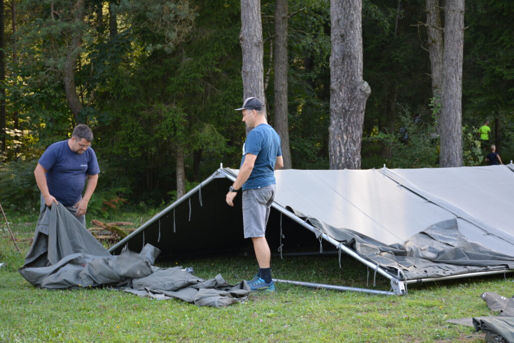 Postavljanje šotora. 22. 8. 2025, Pokojišče nad Borovnico. Foto: Andreja Lončar