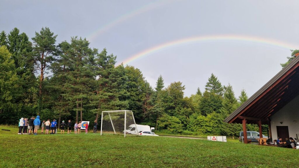 V soboto smo se zjutraj takoj po jutranji telovadbi in okusnem zajtrku odpravili na daljši pohod. S Pokojišča smo se spustili proti 5. slapu v soteski Pekel, kjer smo pojedli malico, najbolj pogumni pa so celo zaplavali pod slapom. Kljub temu, da je bil pohod bolj zahteven, so se otroci odlično izkazali, si medsebojno pomagali in bili zelo zadovoljni s celotnim pohodom. Vmes ni manjkalo dobre volje, petja, pogovora in sicer takrat stabilnega vremena, ki pa se je kasneje obrnilo. Po prihodu nazaj nas je že pričakalo toplo kosilo. Po kosilu smo imeli krajši počitek nato pa obisk skritega gosta, ki so ga otroci že nestrpno pričakovali. Obiskala nas je lokostrelka, ki že vrsto let uči lokostrelstvo in ga tudi prikazuje različnim starostnim skupinam. Otroci so se razdelili v mlajši in starejšo skupino in med seboj naredili turnir v lokostrelstvu. V vsaki skupini so na koncu najboljši trije dobili medaljo. Pri starejši skupini nam je malo zagodlo vreme, saj je čez prišla kar dolga fronta.