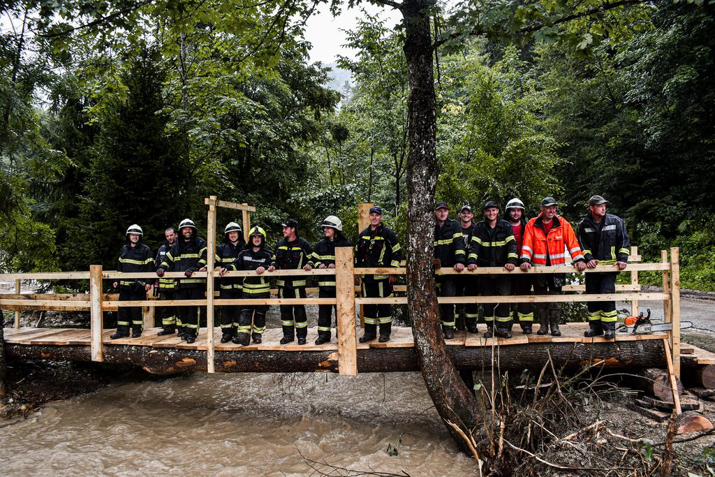 Akcija se je za nas pričela v soboto, 5. avgusta, ko smo bili proženi za pomoč gasilcem v Polhograjski dolini. Tam smo pomagali pri čiščenju, prečrpavanju vode, zgradili smo tudi začasno brv in pomagali pri sanaciji plazu.