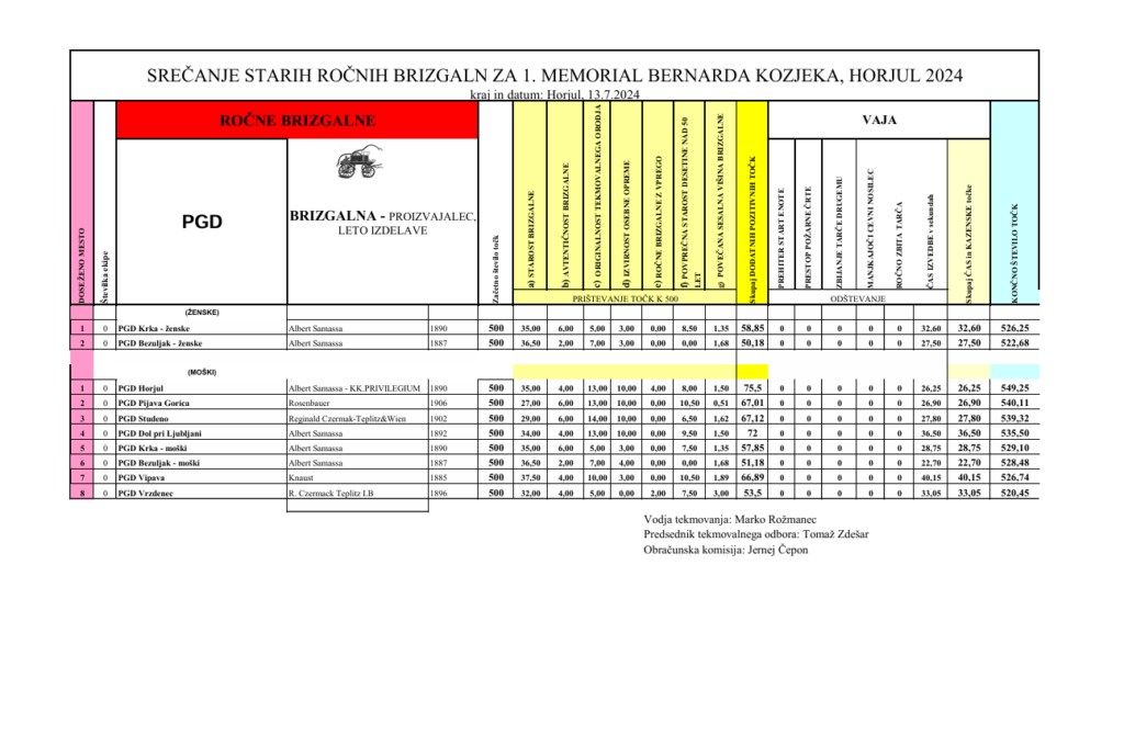 V moški kategoriji je zmagal PGD Horjul, v ženski pa PGD Krka. Spodaj so objavljeni še uradni rezultati: