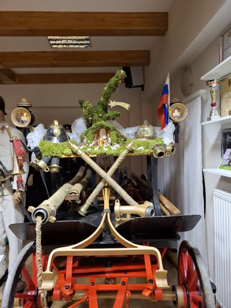Na zadnjo adventno nedeljo je tako kot vsako leto sledil raznos gasilskih koledarjev vaščanom, ki se jih vedno razveselijo. Naslednji dan se je postavila še božična smrekica, ki sedaj krasi nadstrešek vhodnih garažnih vrat ob kipcu svetega Florijana. Da pa ne bi niti gasilski dom ostal brez jaslic, so poskrbeli naši veterani, ki so jih postavili kar na stari ročni brizgalni in jih okrasili z gasilskimi rekviziti.