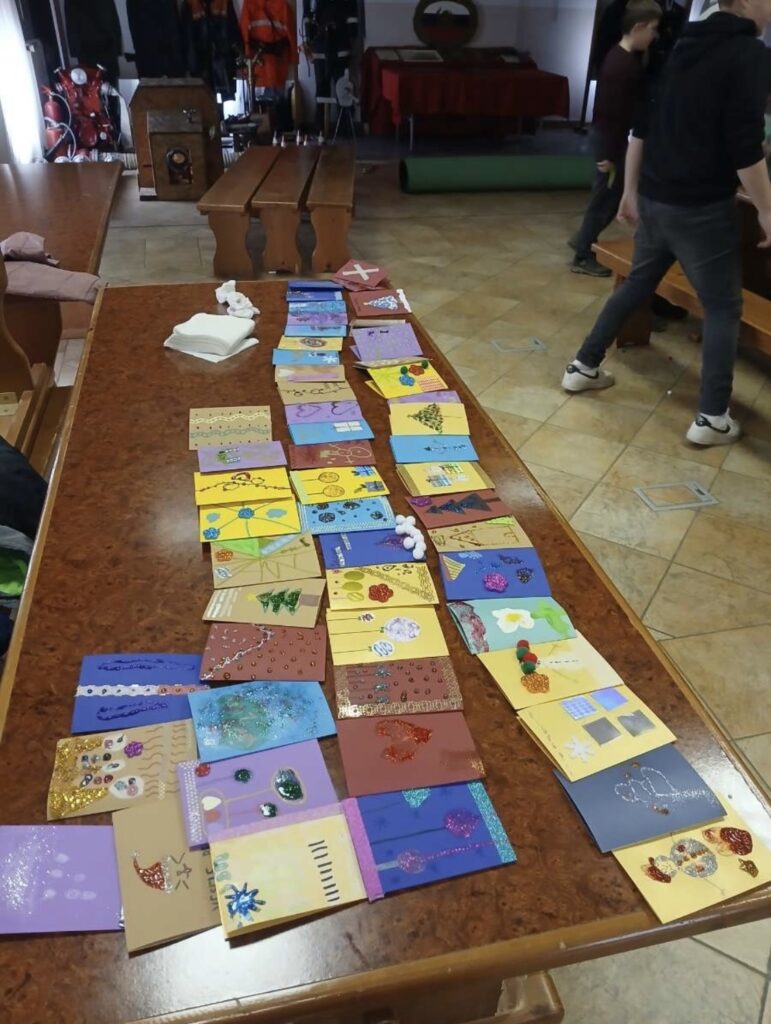 V sredini decembra se je dvorana v gasilskem domu spremenila v pravo »Božičkovo delavnico«. Polno otrok, mentoric pa tudi staršev je na lepo decembrsko soboto kot vsako leto izdelovalo voščilnice. Dopoldne je minilo kot bi mignil, na mizi pa smo imeli narejenih, napisanih in žigosanih več kot dovolj voščilnic. Na koncu smo še celo dvorano pospravili, v naslednjih dneh pa odposlali narejeno delo.